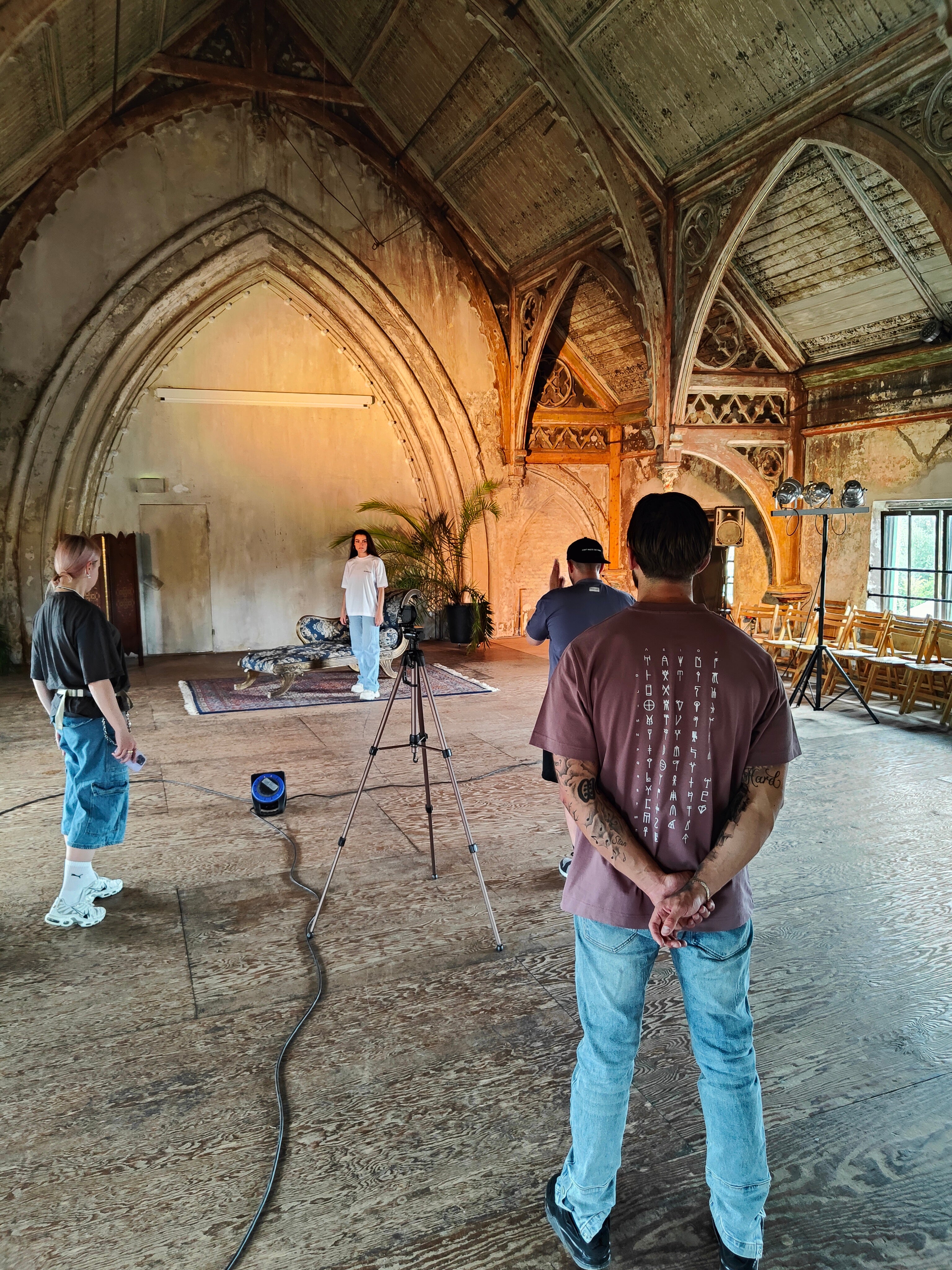 Pre-shoot briefing with team